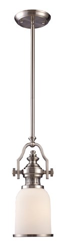 Elk 66122-1 Chadwick 1-Light 16-1/2-Inch Pendant, Satin Nickel With White Glass