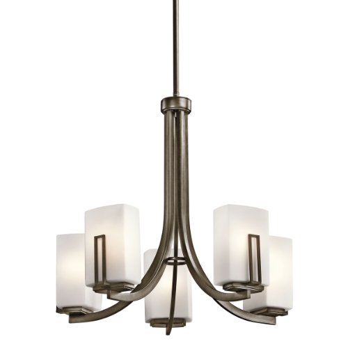 Kichler Lighting 42426SWZ Leeds 5-Light Chandelier, Shadow Bronze with Satin-Etched Cased Opal Glass