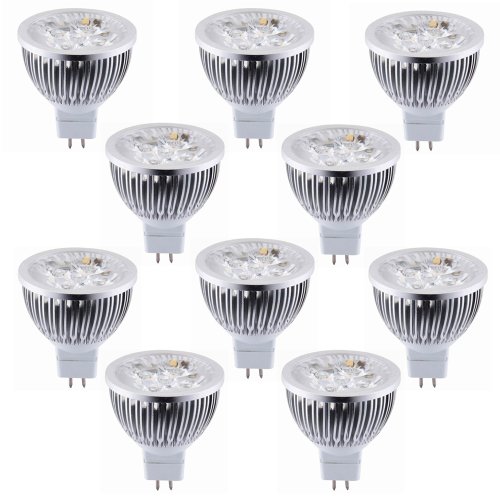 All images of Lot of 10 Dimmable 12V 4W MR16 LED Bulbs - 6000K Daylight LED Spotlights - 50Watt Equivalent - 330 Lumen 45 Degree Beam Angle