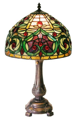Warehouse of Tiffany 1669-MB163 Tiffany-style Jeweled Petite Table Lamp, Green