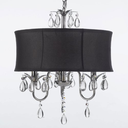 Modern Contemporary Black Drum Shade & Crystal Ceiling Chandelier Pendant Lightning Fixture